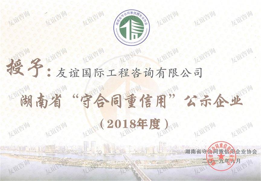 • 2018年度湖南省“守合同重信用”企業(yè)